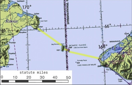 Over the years numerous plans have surfaced for building either bridges or tunnels across the Bering Strait. With the Diomede Islands in the middle, it will require two 25-mile long tunnel/bridges to span the distance.