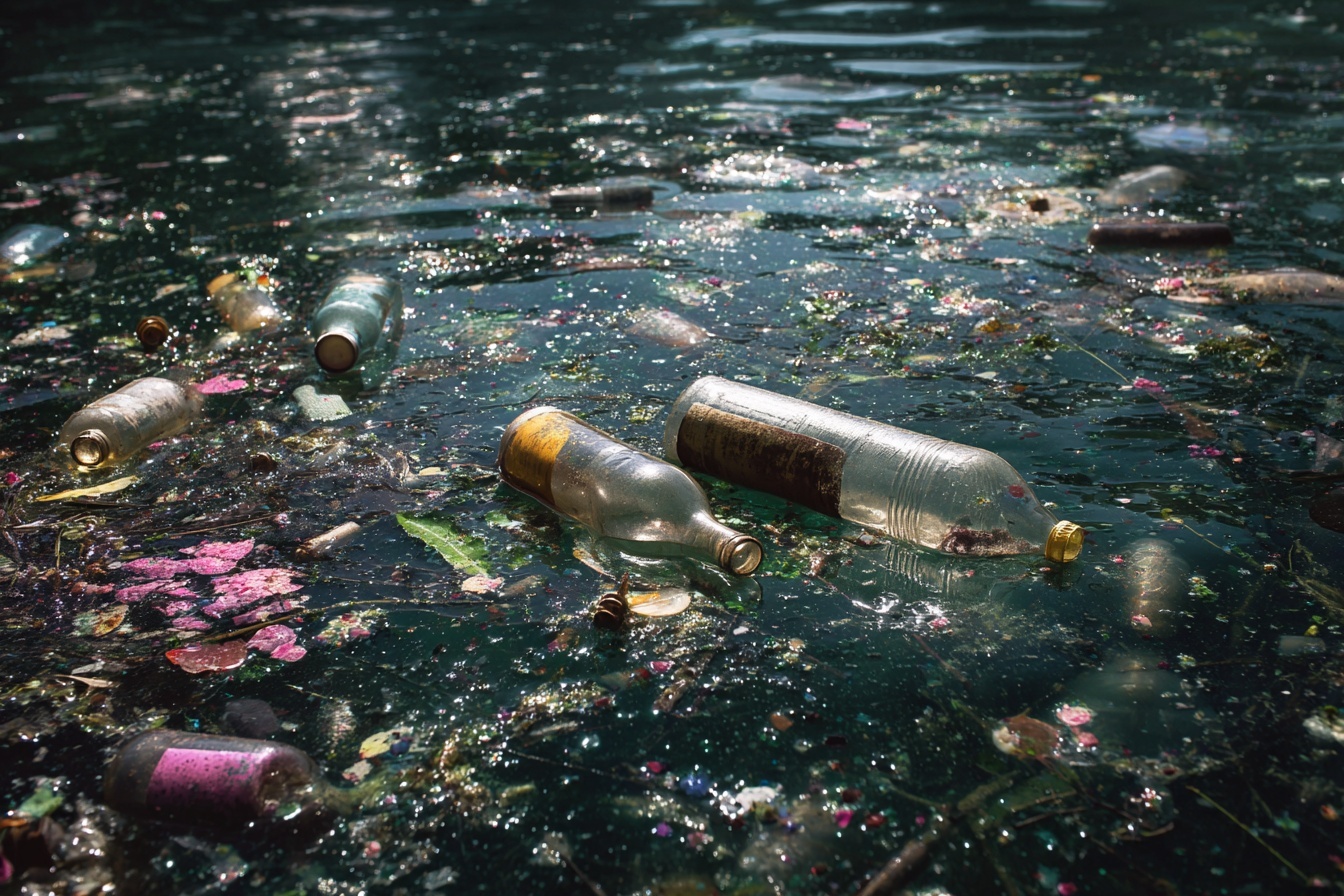 That’s how much plastic is currently sitting in landfills, floating in oceans, and embedded in ecosystems around the world. Not the amount produced since plastic was invented — the amount that’s already out there, already dispersed, already working its way into the food chain and the water supply and the bodies of every living creature on Earth. Scientists have found plastic particles in Antarctic sea ice, in the deepest ocean trenches, and in human blood. A liter of bottled water contains, on average, nearly a quarter of a million nanoplastic fragments.